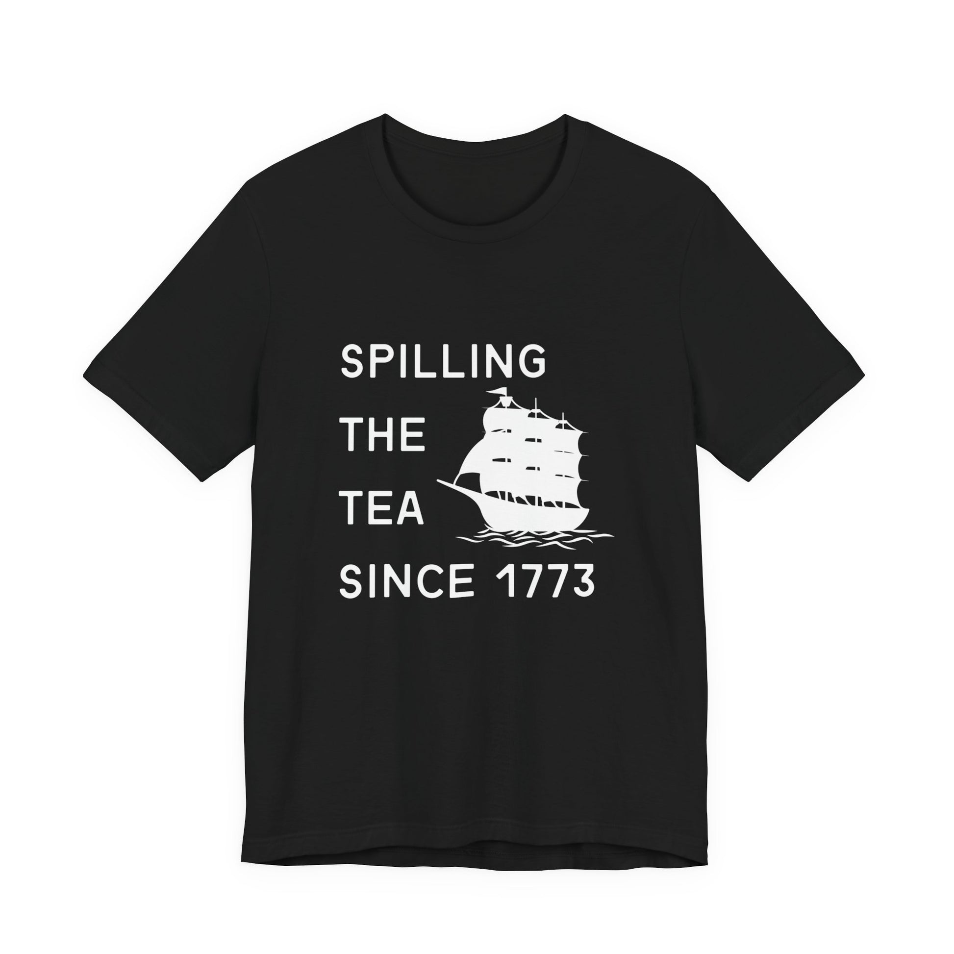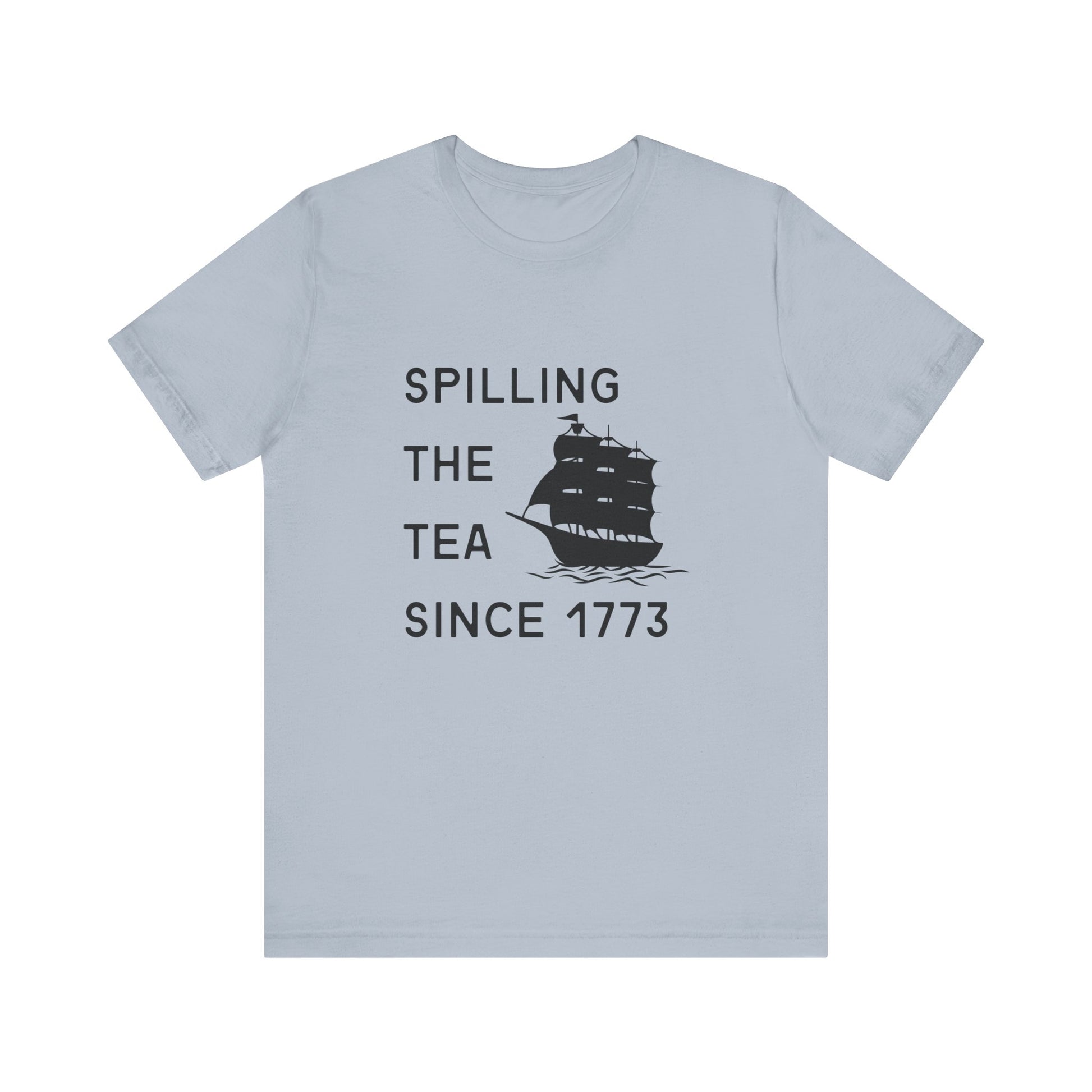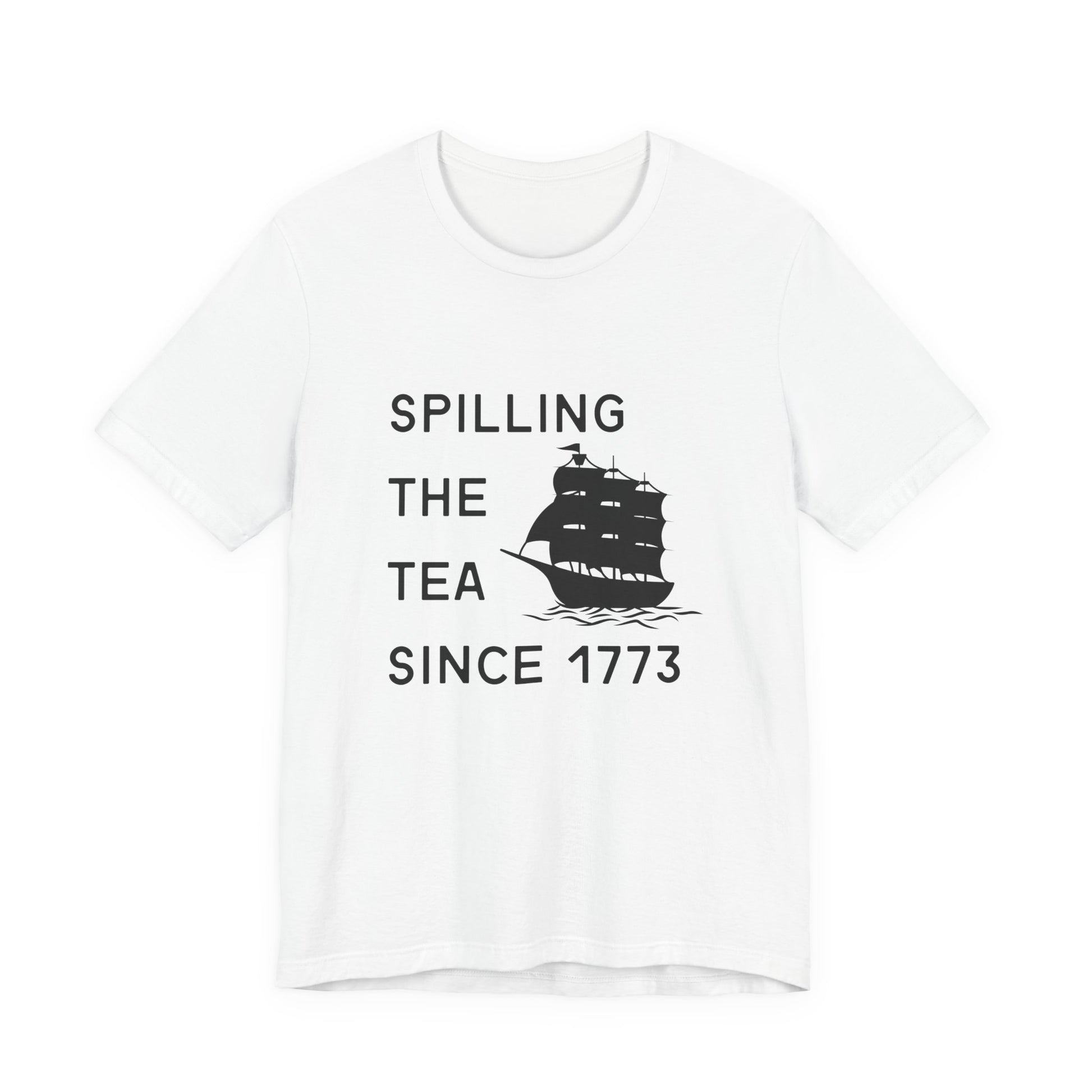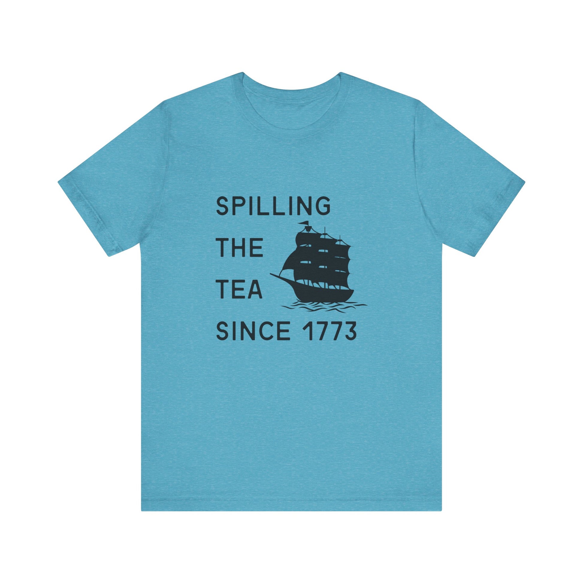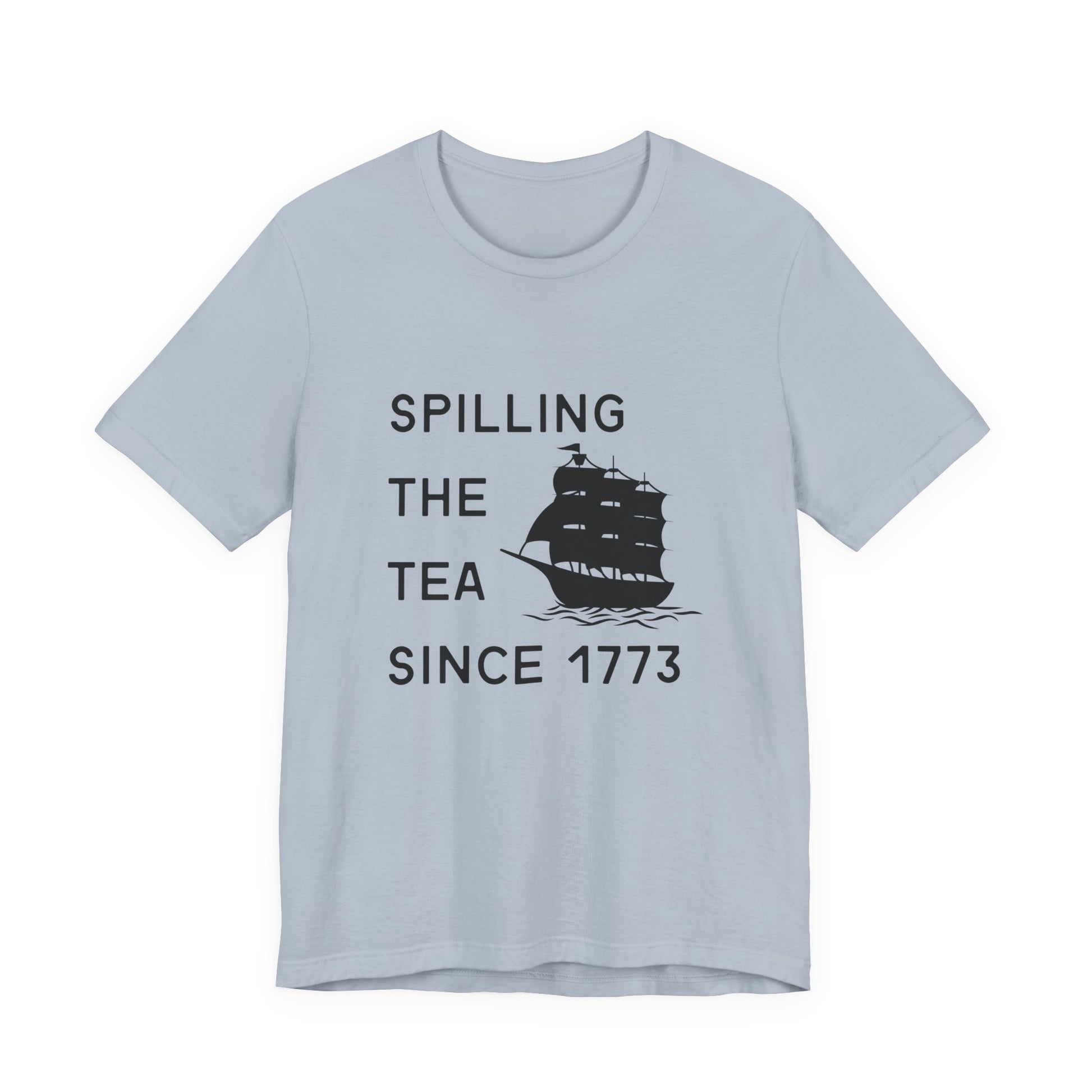 Step back in time with our 'Spilling the Tea Since 1773' tee, celebrating the iconic Boston Tea Party. This shirt is not just a fashion statement but a nod to history and rebellion. Perfect for history buffs and tea enthusiasts alike, it blends humor with a dash of patriotism. Whether you're sipping your favorite brew or making a statement, let this tee be a conversation starter. Embrace the spirit of independence and a good cup of tea with this timeless tee.