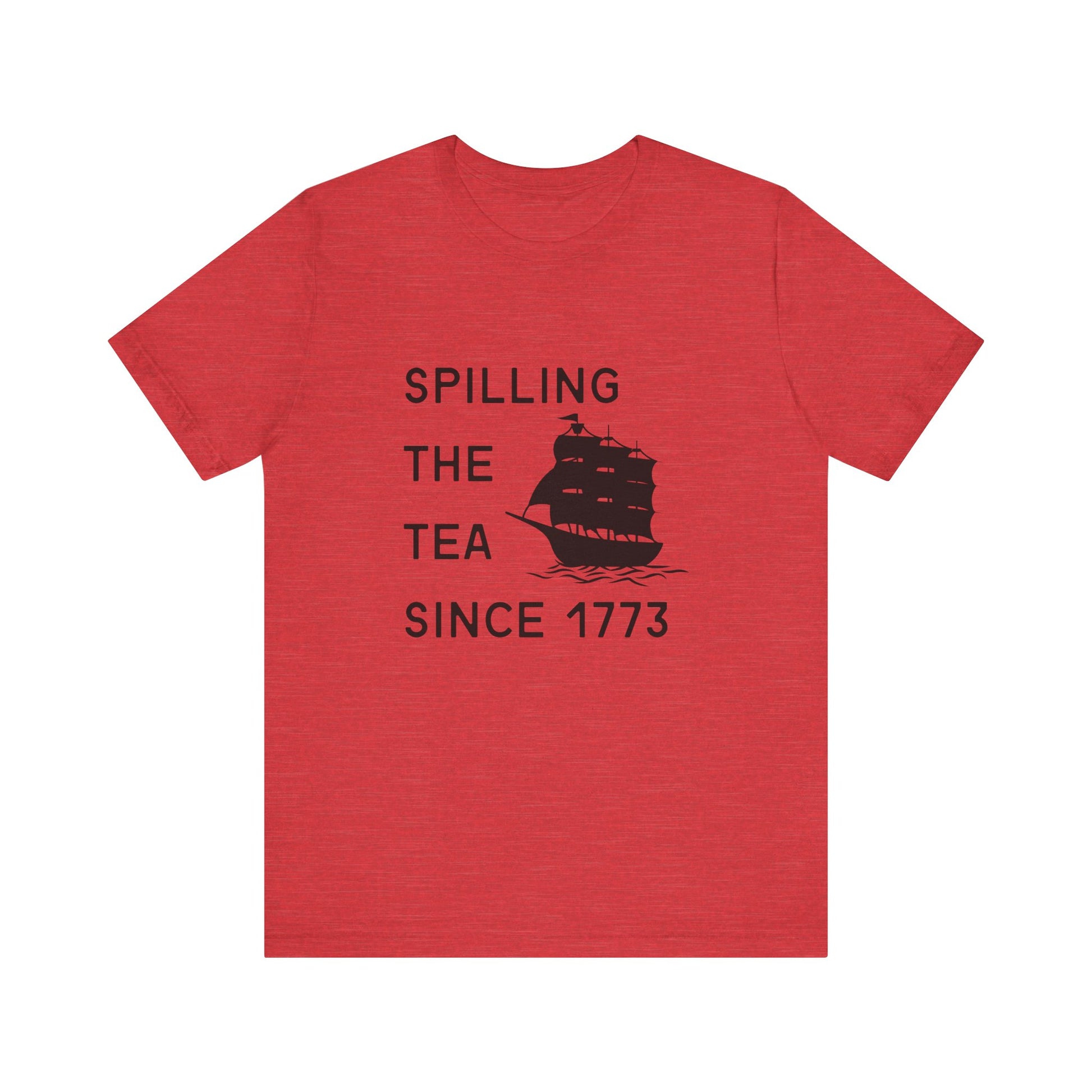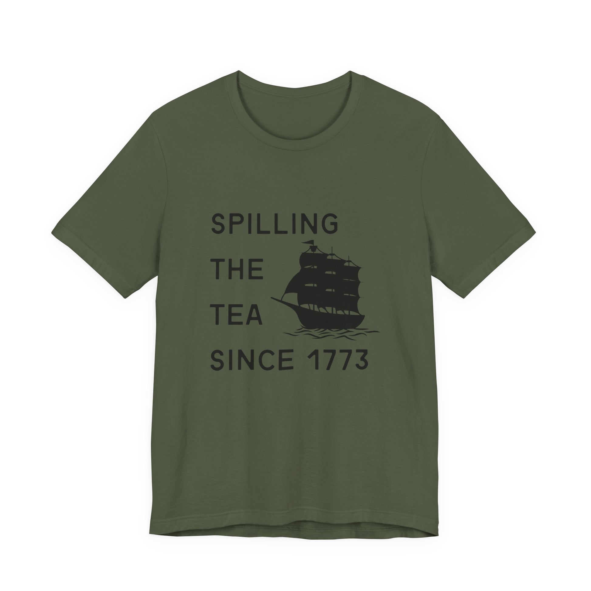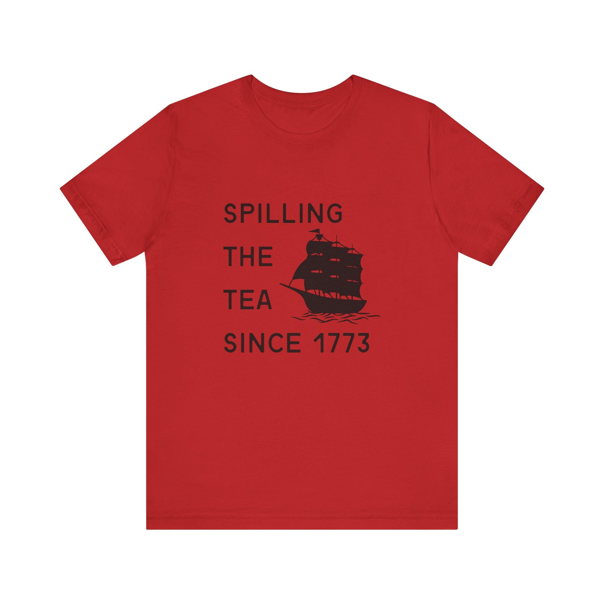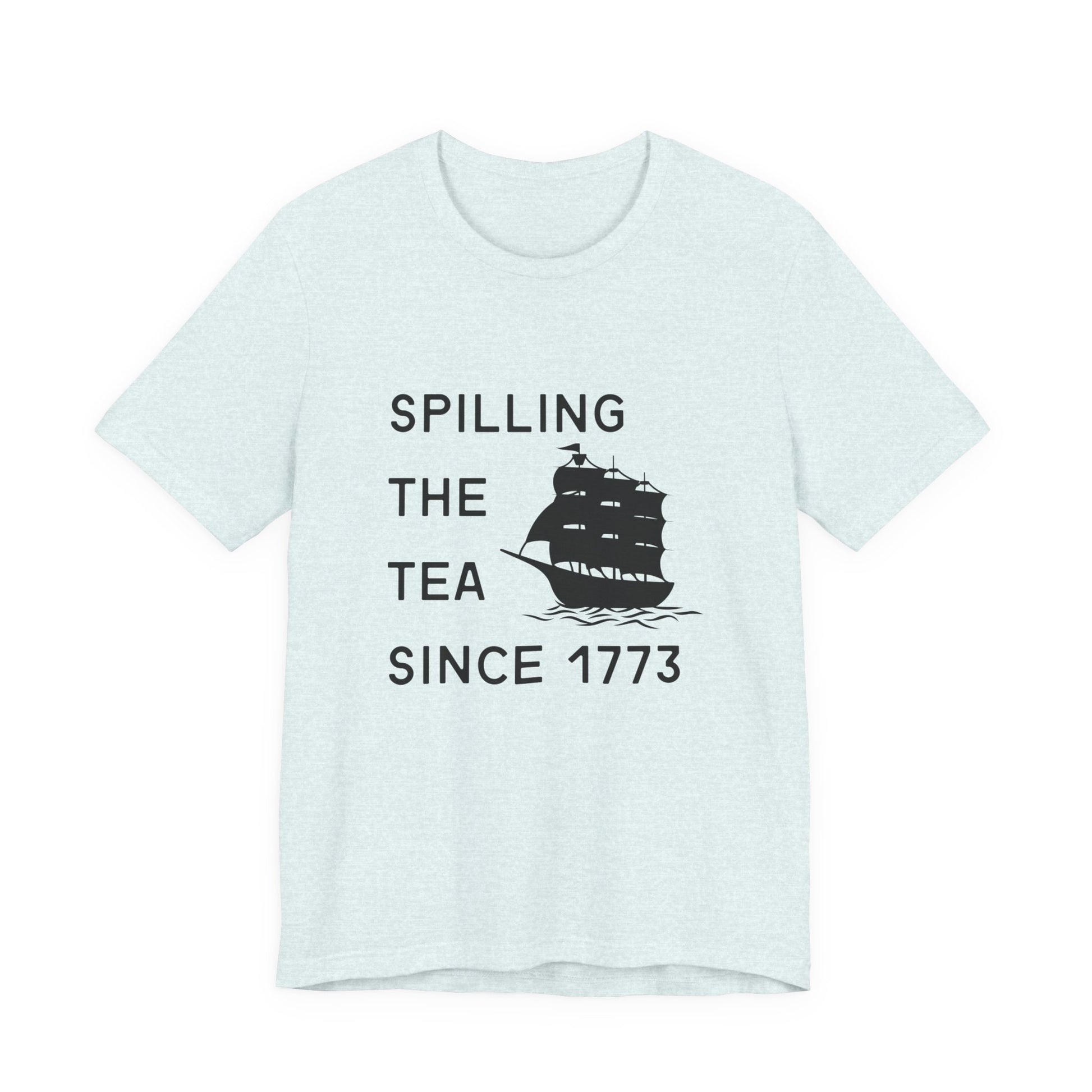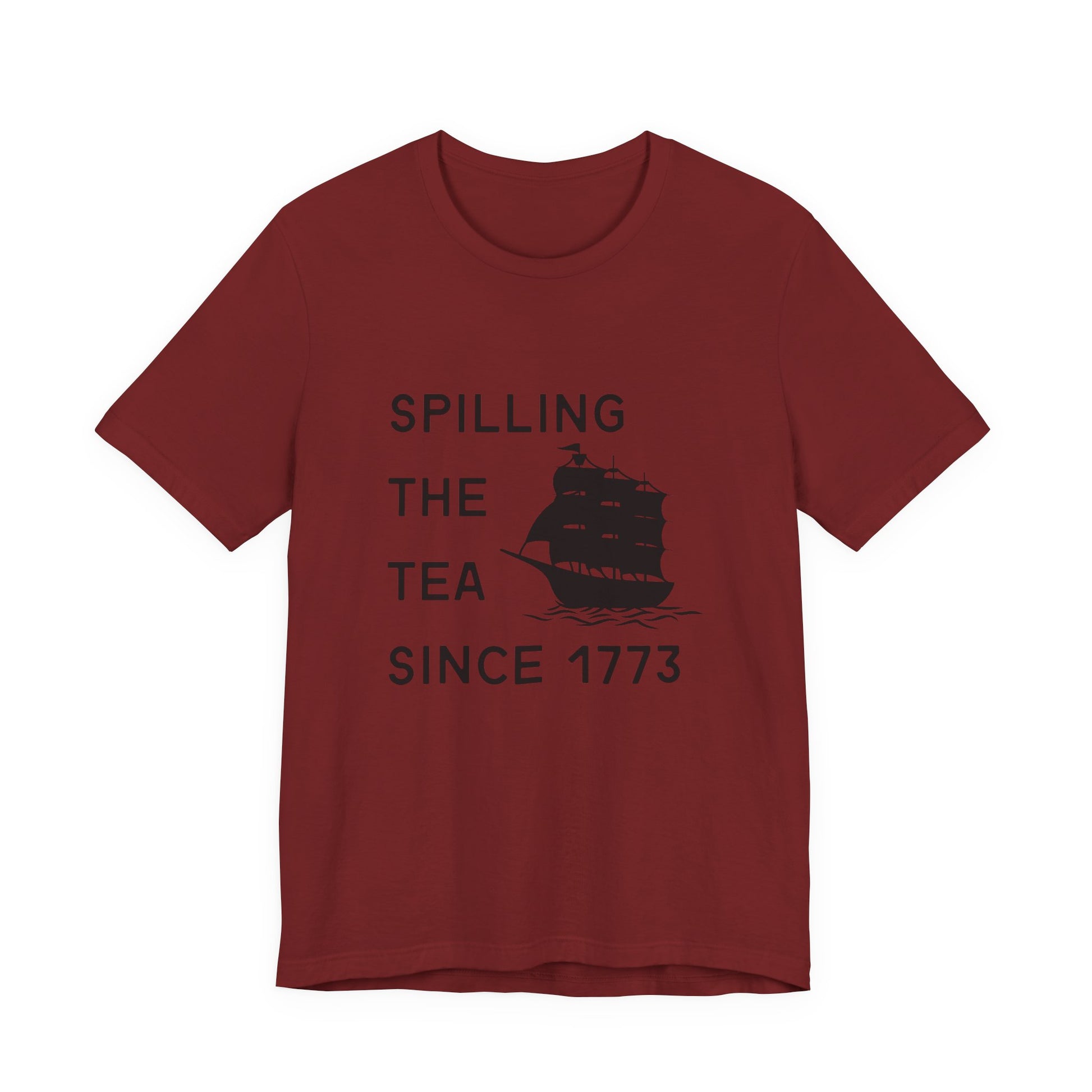 Step back in time with our 'Spilling the Tea Since 1773' tee, celebrating the iconic Boston Tea Party. This shirt is not just a fashion statement but a nod to history and rebellion. Perfect for history buffs and tea enthusiasts alike, it blends humor with a dash of patriotism. Whether you're sipping your favorite brew or making a statement, let this tee be a conversation starter. Embrace the spirit of independence and a good cup of tea with this timeless tee.