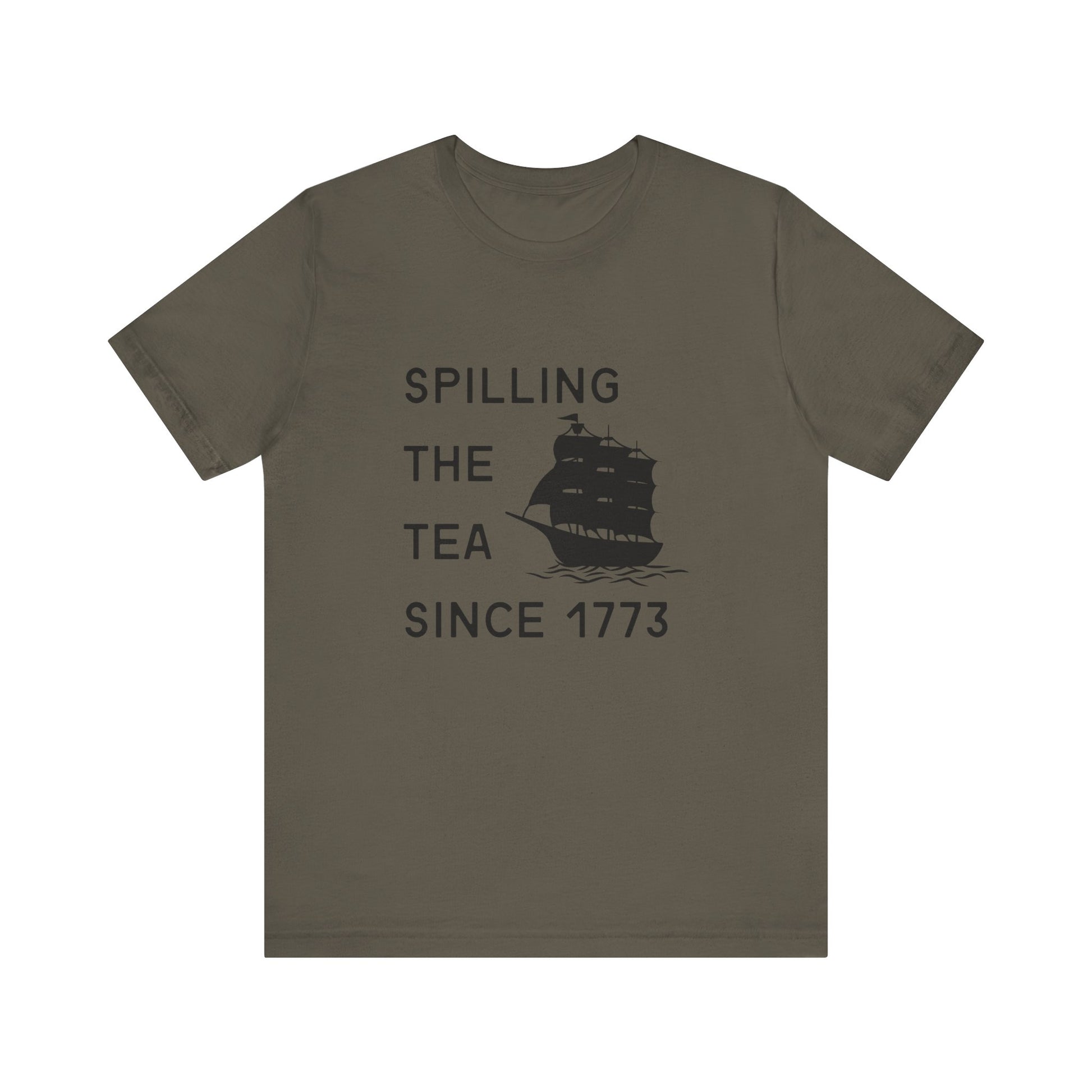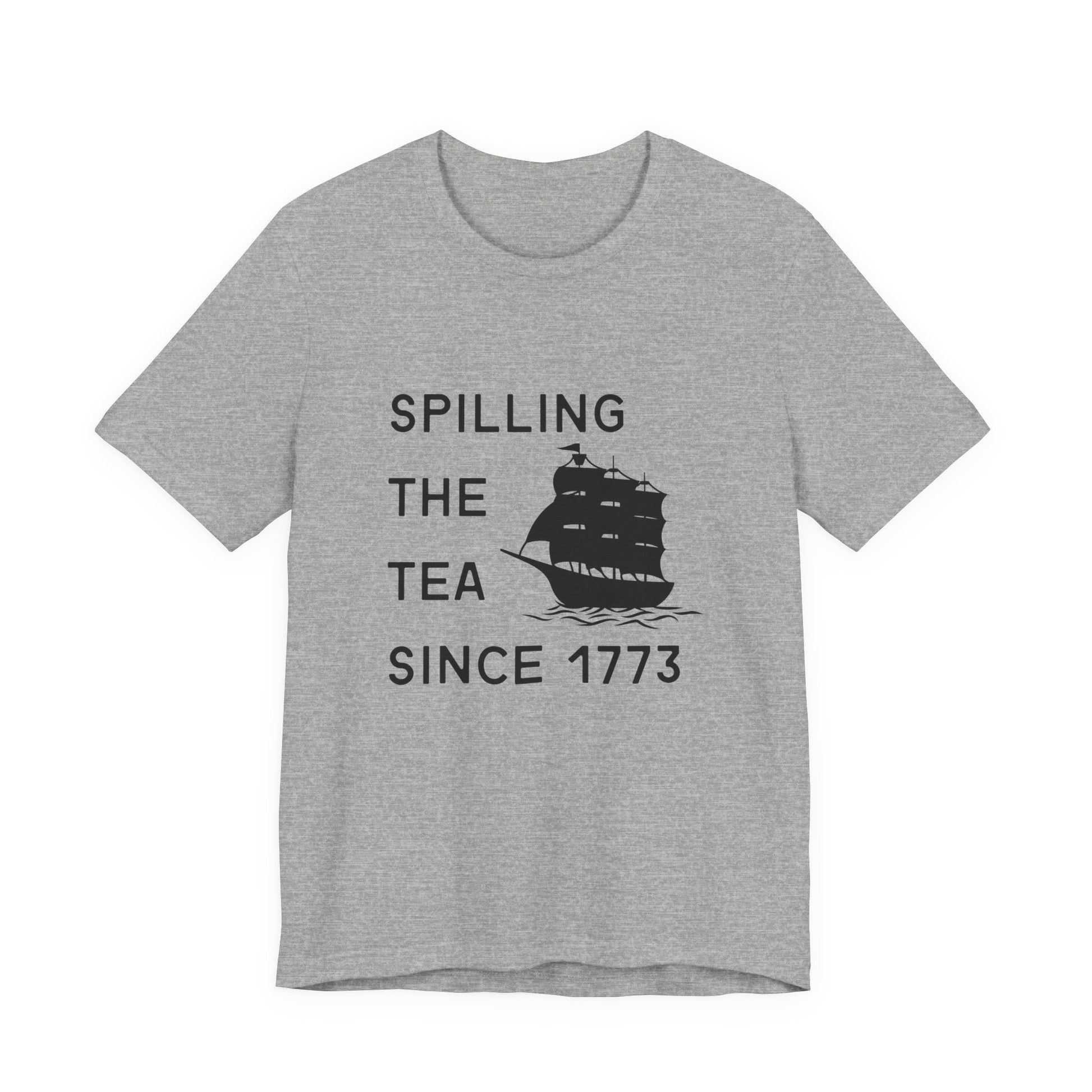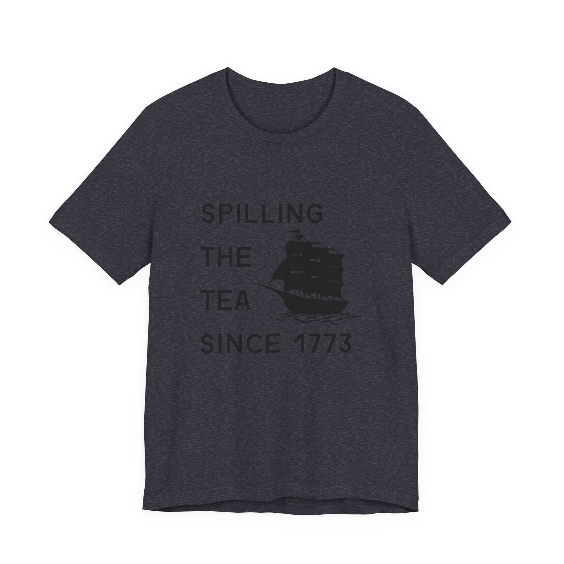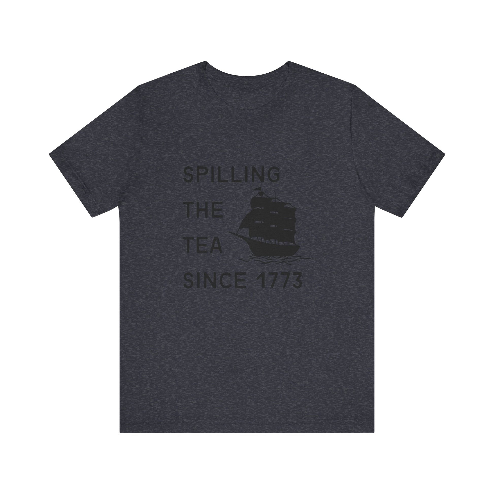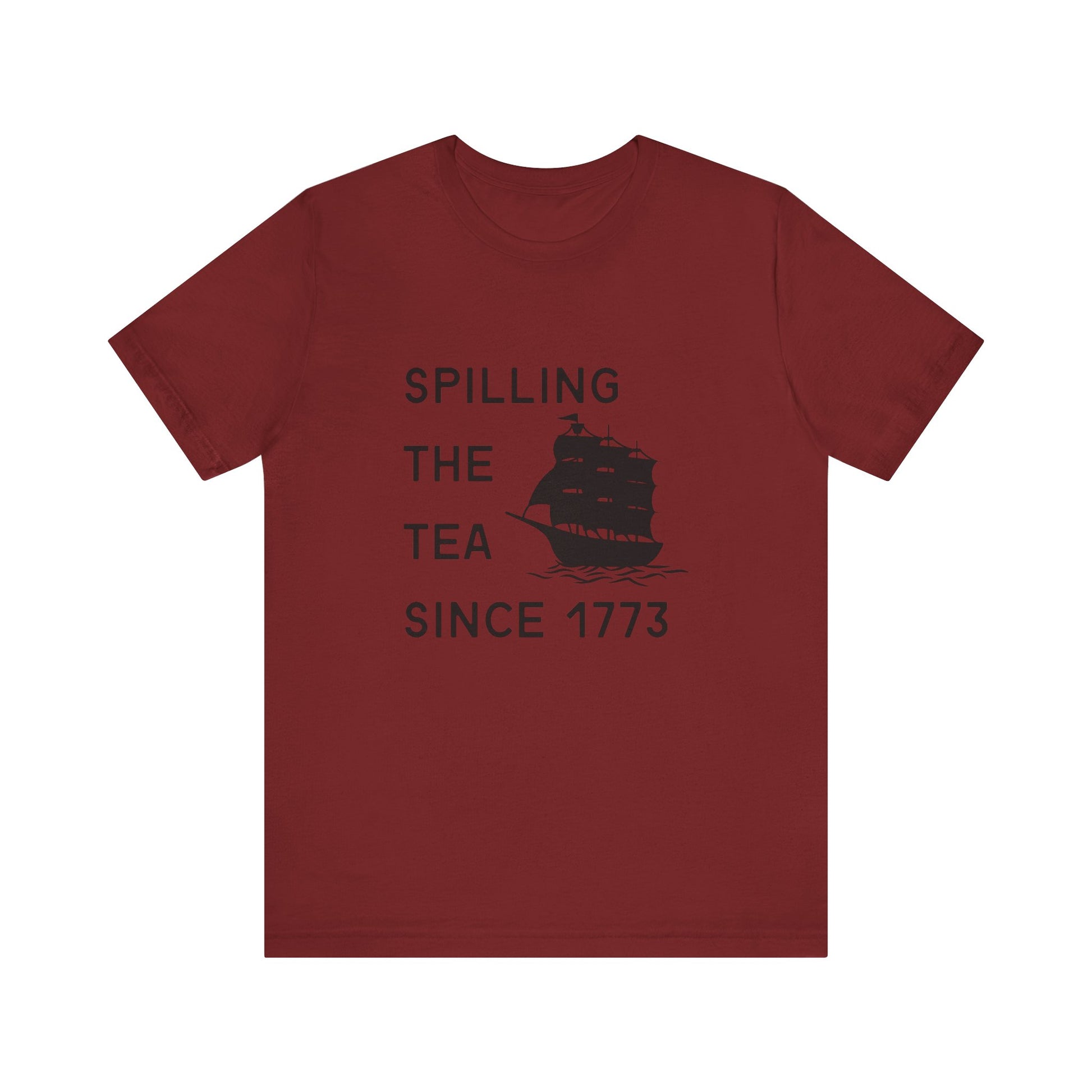 Step back in time with our 'Spilling the Tea Since 1773' tee, celebrating the iconic Boston Tea Party. This shirt is not just a fashion statement but a nod to history and rebellion. Perfect for history buffs and tea enthusiasts alike, it blends humor with a dash of patriotism. Whether you're sipping your favorite brew or making a statement, let this tee be a conversation starter. Embrace the spirit of independence and a good cup of tea with this timeless tee.